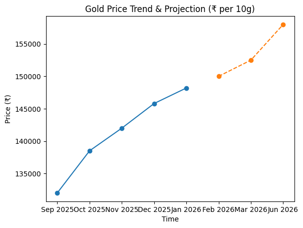🔮 Projected Gold Price Levels (₹ / 10g)